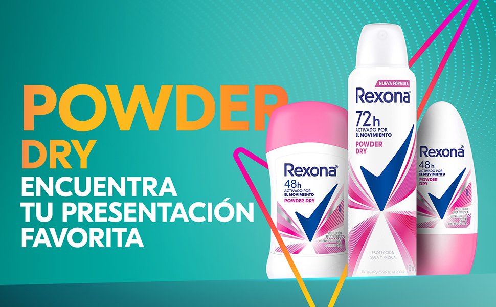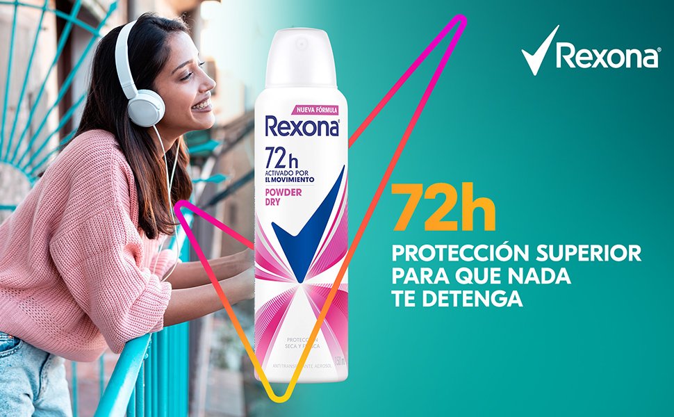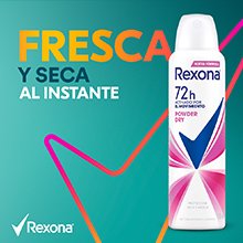 - Antitranspirante Rexona que brinda doble protección contra el sudor y el mal olor.