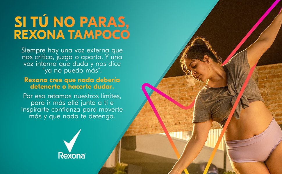 ¡Que nada te detenga!Porque si tú no paras, Rexona tampoco. |