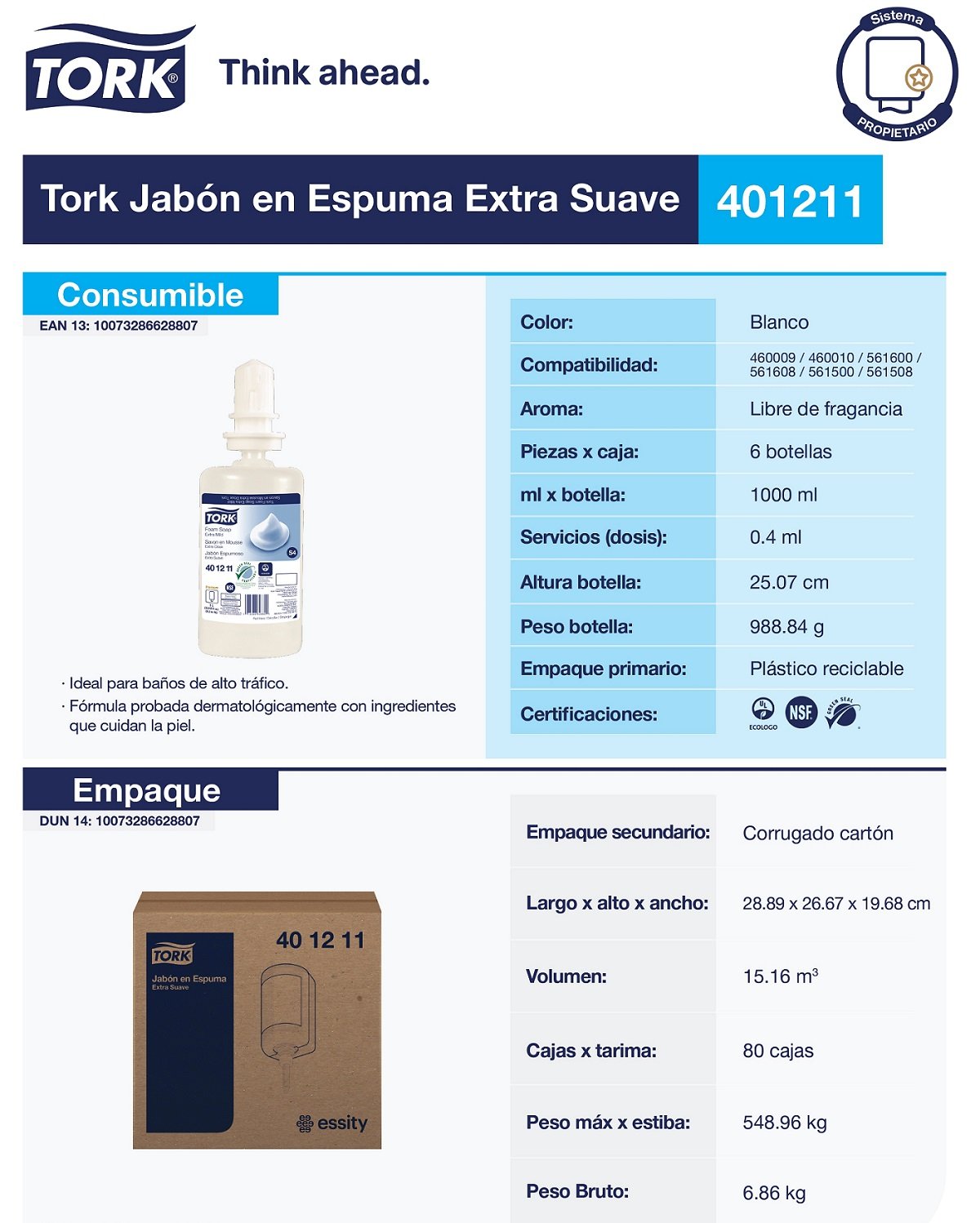 - Triple certificación: Ecologo, Green Seal y NSF.